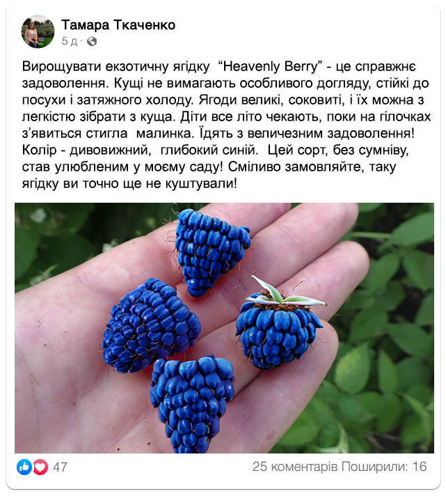 Синя малина “Heavenly Berry”: ягода, яка дивує!