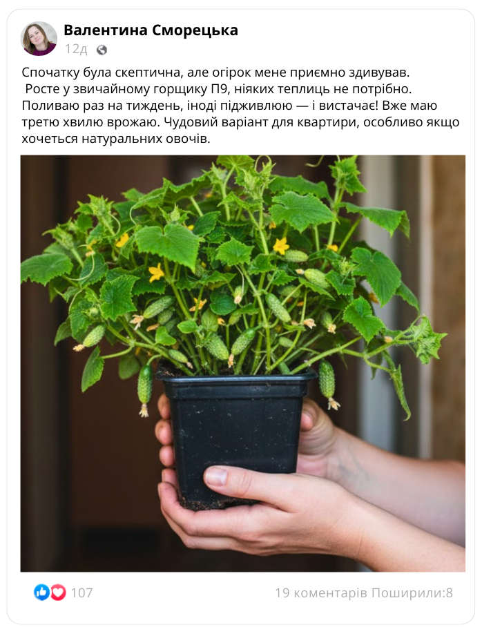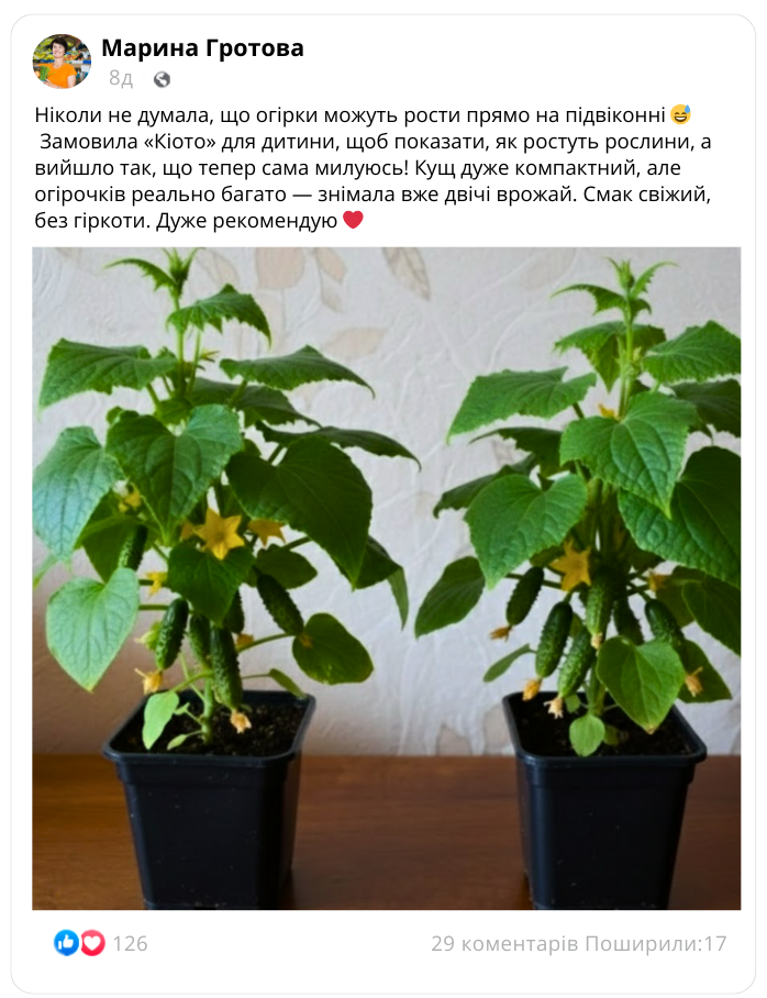 Реальний досвід вирощування кімнатного огірка «Кіото» від господарів України