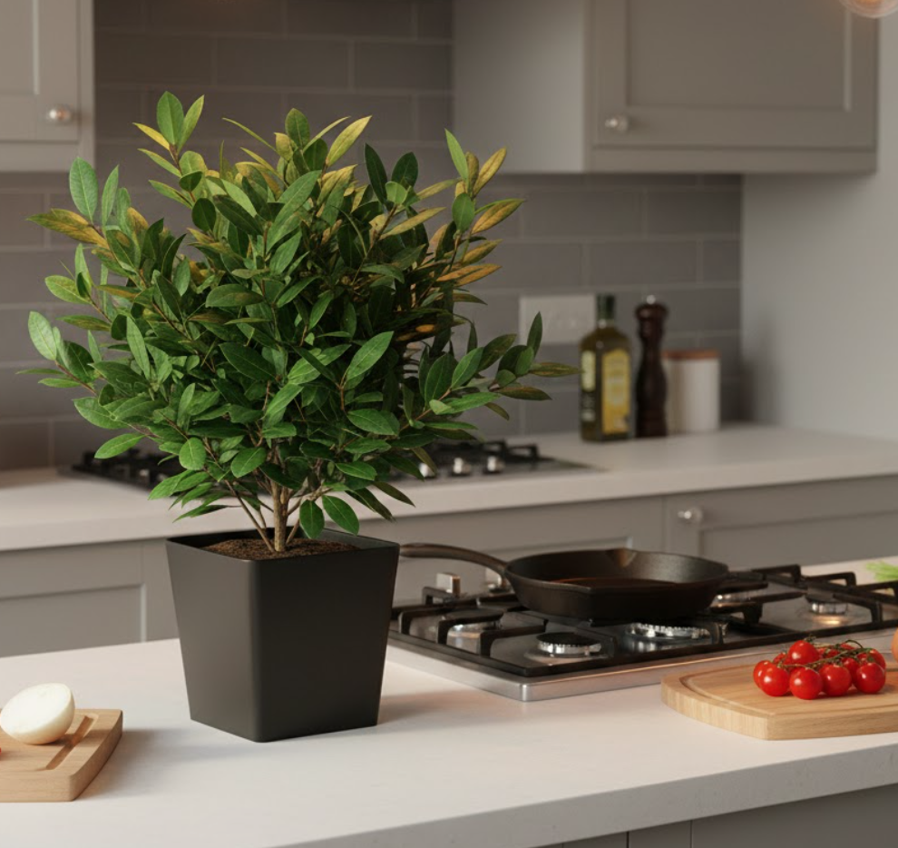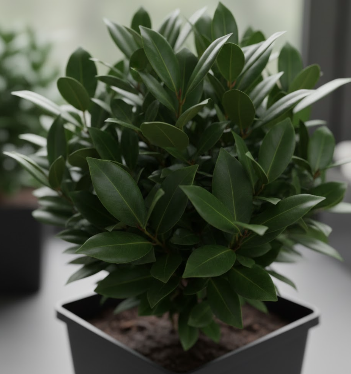 Чорний квадратний горщик з лавром — простий шлях до затишку та комфорту!