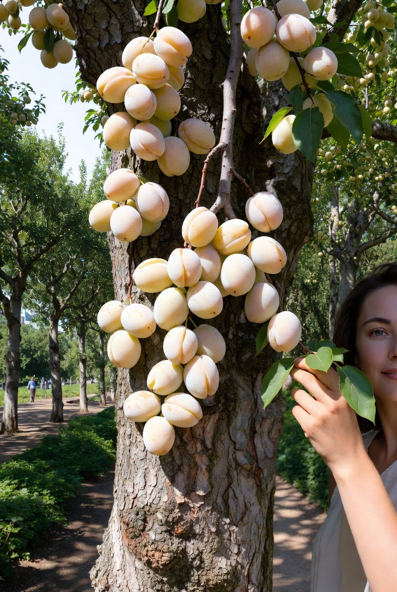 Біла нектаринова слива «Марелла» — це сучасний великоплідний сорт, створений на основі класичної групи ренклодів. Дерево формує компактну, добре освітлену крону та відзначається стабільним ростом і високою адаптивністю. Сорт швидко приживається після посадки, активно нарощує кореневу систему та вже у перші роки демонструє інтенсивний розвиток.