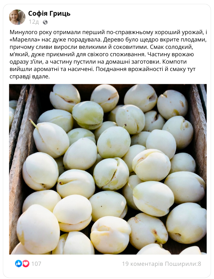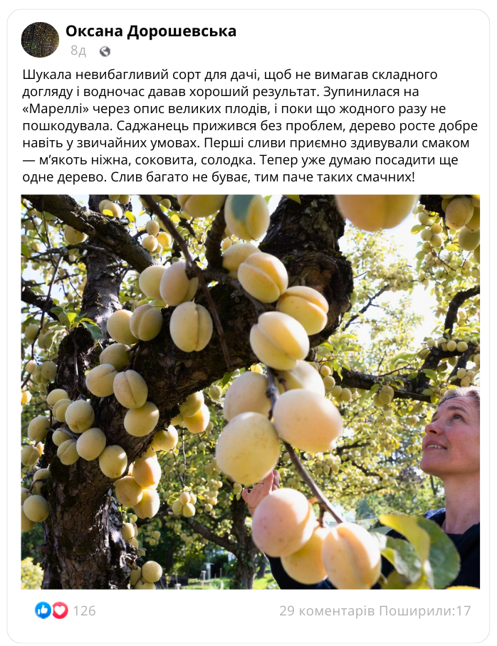 Смак та краса сорту «Марелла»: слива з якою немає проблем!