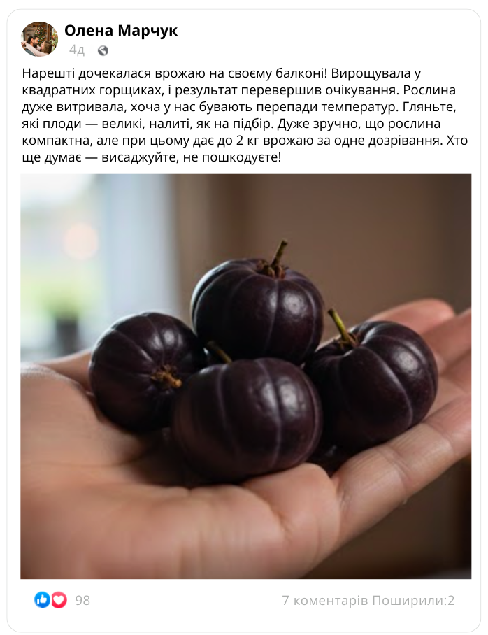 Інформація на сайті має довідковий характер і не є гарантією однакових результатів вирощування, оскільки результат залежить від кліматичних умов, ґрунту, догляду та інших факторів. Зображення можуть відрізнятися від фактичного вигляду товару через сезонні особливості та партії постачання.