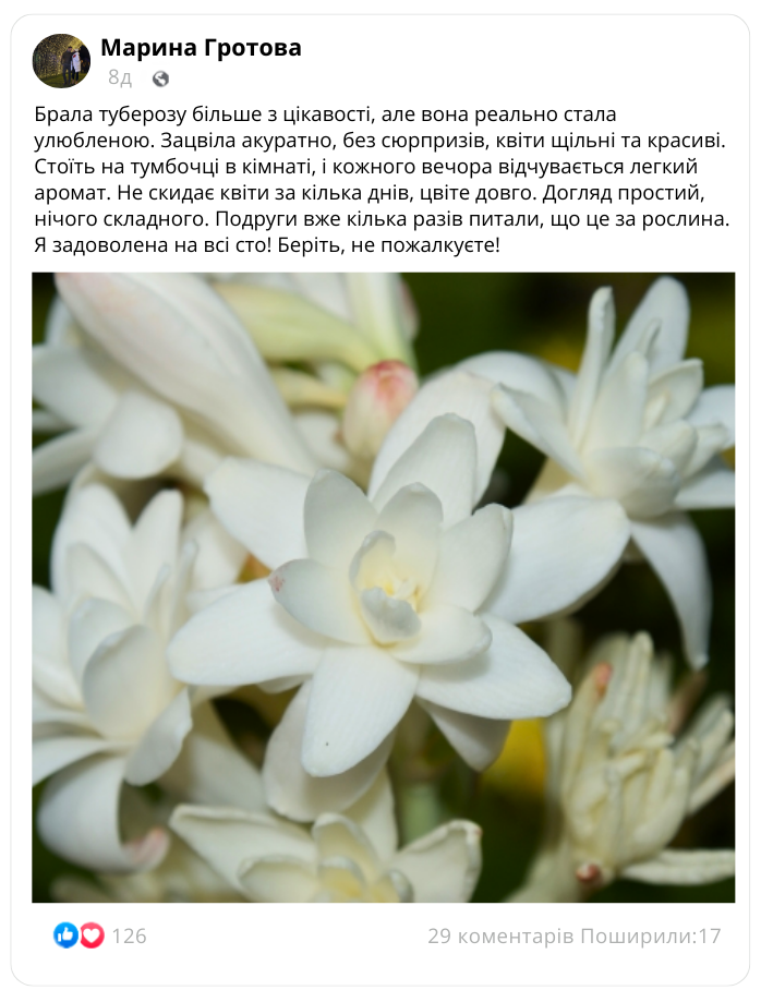 Чому обирають нашу туберозу французької селекції