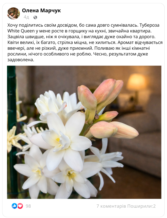 Історії покупців про красу та аромат White Queen у власному домі